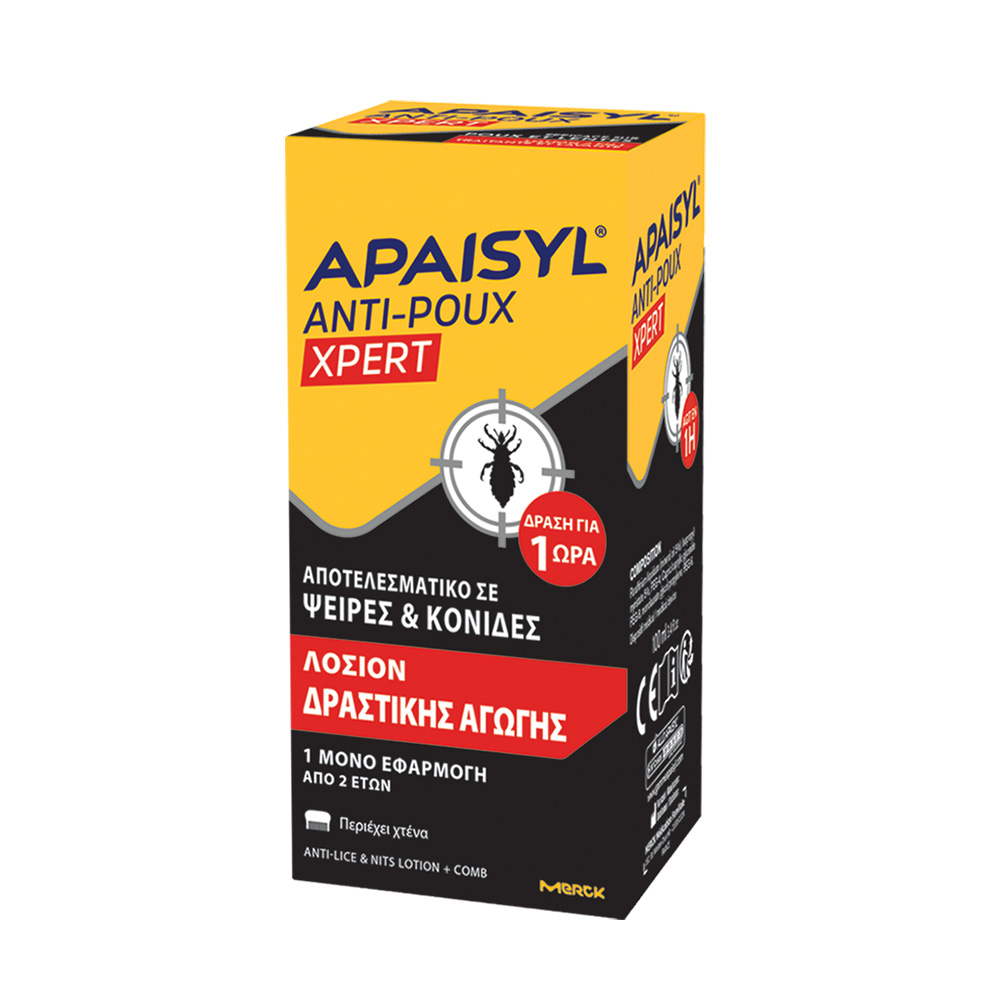 H APAISYL, προσφέρει μέσα από μία αποτελεσματική αντιφθειρική προστασία, λοσιόν η οποία απομακρύνει τις ψείρες και τις κόνιδες, άμεσα. Το προϊόν είναι ελεγμένο και δεν προκαλεί ερεθισμούς και κοκκινίλες στο τριχωτό της κεφαλής. Το Apaisyl Anti-PouxXpert είναι μια δραστική λοσιόν αγωγής που σκοτώνει 100% τις ψείρες και 100% την κόνιδα με 1 μόνο εφαρμογή, χάρη στην πατενταρισμένη φόρμουλα με μικροσφαιρίδια. Η ειδική φόρμουλα με μικροσφαιρίδια έχει μηχανική δράση που εξουδετερώνει την αντίσταση της ψείρας και εισχωρεί σε όλους τους πόρους, ακόμα και στους πιο μικρούς.