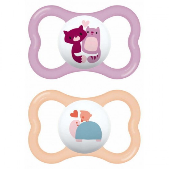 Πιπίλες σιλικόνης με νέο εργονομικό σχεδιασμό, που προσαρμόζονται στην στοματική κοιλότητα του μωρού. Οι αεραγωγοί επιτρέπουν στον αέρα να περνάει ώστε να μην ερεθίζεται η επιδερμίδα του μωρού σας.