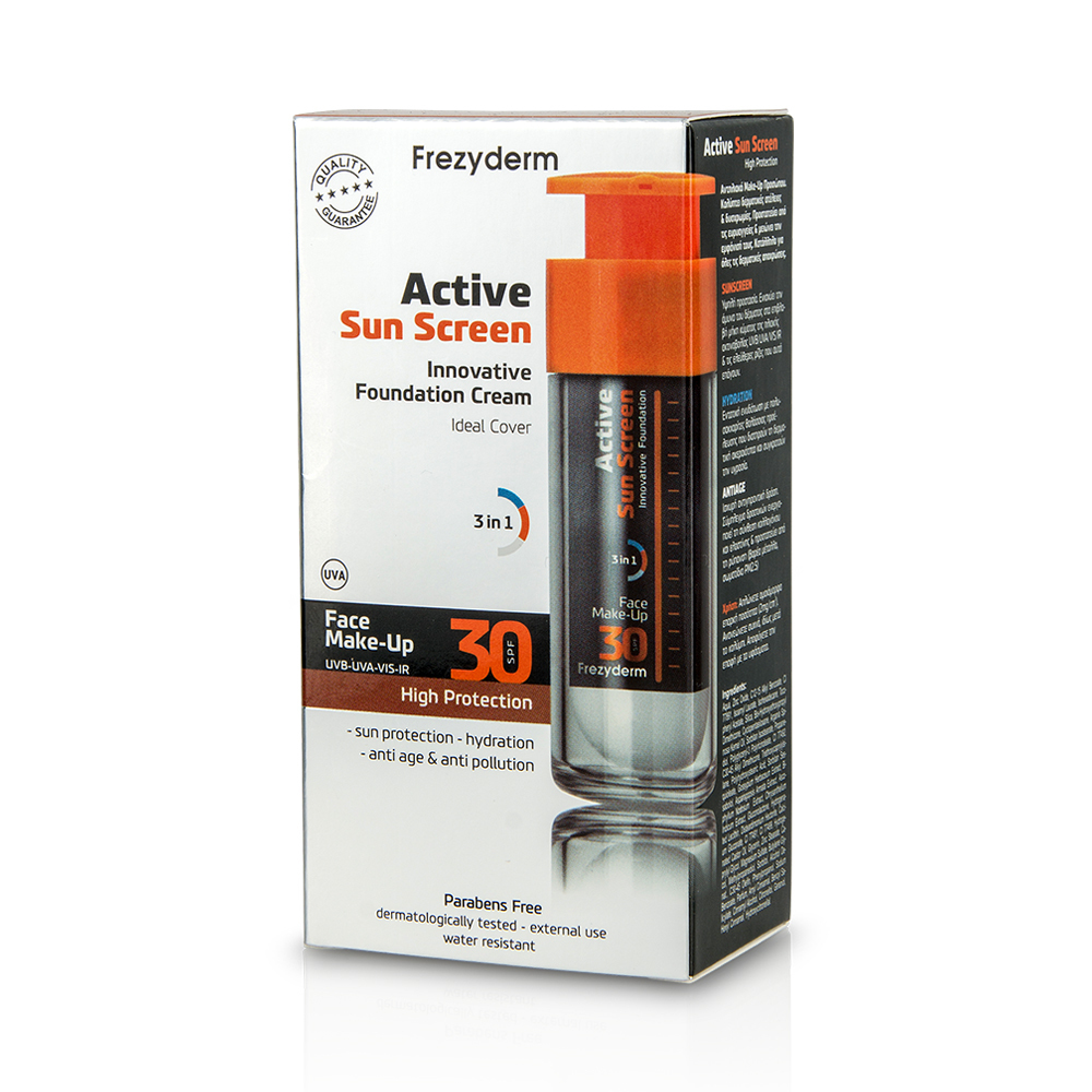 Ενεργό αντηλιακό make-up προσώπου που καλύπτει δερματικές ατέλειες και δυσχρωμίες, προστατεύει από τις ευρυαγγείες και μειώνει την εμφάνισή τους.