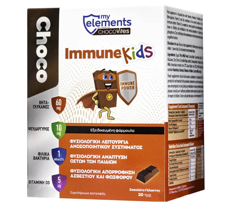 Συμπλήρωμα διατροφής σε μορφή σοκολάτας με Βιταμίνες, Μέταλλα, Προβιοτικά και Βητα-γλυκάνες.