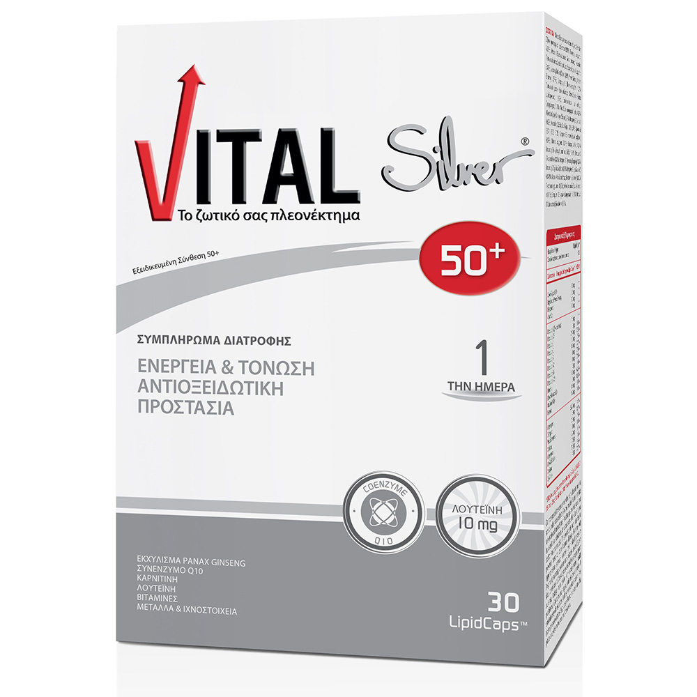 Προσφέρει καθημερινά σε γυναίκες και άνδρες άνω των 50 ετών, άμεση ενέργεια, πραγματική τόνωση, συνεχή αντιοξειδωτική προστασία και ένα μοναδικό σύμμαχο για την καλή λειτουργία του οργανισμού.Η βελτιωμένη σύνθεση του VITAL Silver εγγυάται άμεση αποτελεσματικότητα και ασφάλεια χρήσης χάρη στα: